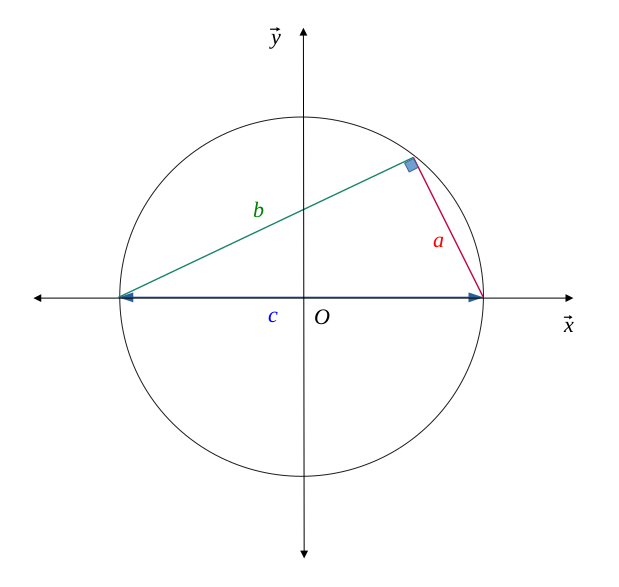 On va chercher à démontrer que le triangle \( \{a, b, c \} \) est rectangle entre \( a \) et \( b \).